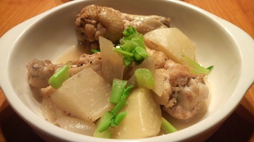 生活クラブのカタログに載っていたレシピで,簡単そうで気になっていた手羽元と大根のあっさり煮を作ってみた.隠し味に昆布茶を入れるのがポイントのようで,そういうことならと,醤油の代わりに白だしを入れて風味をアップしてみると,俄然好みの味になった.ぶり大根と同様,素材から出ただしを存分に沁みこませた大根が実は主役のような気がする.