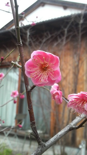 以下,赤いシリーズ.いのししキムチ鍋の赤,鰹の赤,牛の赤,焼き物の赤,そして紅梅.色は生きているなあ.