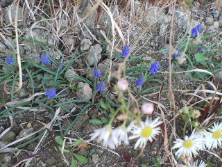 昨日とはうってかわり日中はよく晴れた。ゼラニウムとムスカリは西洋の園芸種だけあって油絵のよう。とさみずき(土佐水木)はやはり日本画が似合いそう。昨日写真に撮った玉之浦は花びらの先が食べられて、ただの赤い椿になっていた。きっとひよどりの仕業だ。