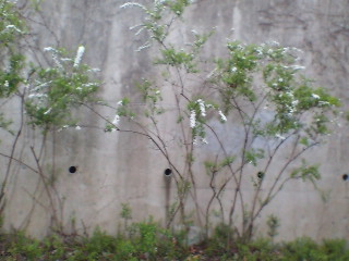 通学路途中の雪柳の様子。雪柳は普通こんもりと仕立てて、白い花枝を元気よく飛び立たせているものが多いのだけど、こんなにひょろひょろに剪定しているのは初めて見た。