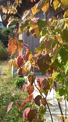 写真中央にある、裏のお隣さんとの際(きわ)に植えた大輪中国ミツマタは、かろうじて葉っぱが残っているが、もうあと一寒波くらい来たらさすがに落葉するんじゃないかな。写真では見えにくいけど、つぼみをびっしりつけている。甘い香りの花咲く早春が楽しみ。