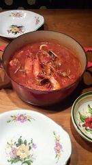 1センチでもずれたら下品になる、とか、この料理にこの皿は合わないと盛り付け後に新しい皿へと取り替えられたり、家族しかいないときでもうちのなかの食事は、夫からのダメだしがびしばし飛ぶという、実を言うと緊張感あふれる場であった。食卓の写真を撮ってここに載せてもいいという許可が出たのも、昨年からだからね。いまどきの「お嫁さん」だったら実家に逃げ帰るんじゃないかなという厳しい修行の時間が結婚後ずっと流れていたのだった。